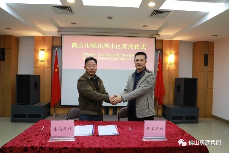 12月11日,鶴山市桃花園小區(qū)簽約儀式在房建集團(tuán)會(huì)議室舉行,房建集團(tuán)董事長(zhǎng)顏琦、總經(jīng)理何景輝、明華房地產(chǎn)董事長(zhǎng)麥志明等同志出席儀式。