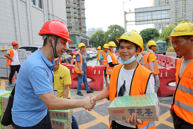 公司黨委及工會派出代表兵分多路,深入我司江海路保障房項目、科潤路項目、禪城區(qū)慢行空間示范路項目、三水觀景匯源華府項目等多個重點工程、重點項目,為高溫下堅守崗位的施工一線人員送去防暑降溫用品,并向他們表達了親切的問候。同時我司也積極履行社會責任,黨員志愿者為沙塘社區(qū)快遞小哥驛站捐贈了一批清涼飲料。