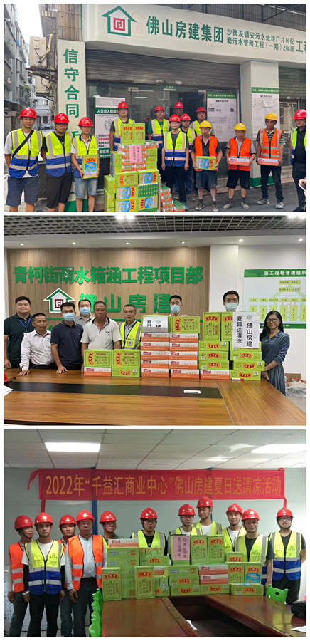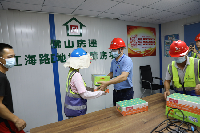 炎炎夏日,為切實做好一線員工健康的服務和保障工作,推動高溫季節(jié)防暑降溫工作的落實,連日來,佛山房建集團持續(xù)開展“送清涼”活動,為高溫下在戶外施工的一線員工送去清涼與關愛,此活動也得到了中共佛山市禪城區(qū)城市管理綜合服務中心總支部的大力支持。