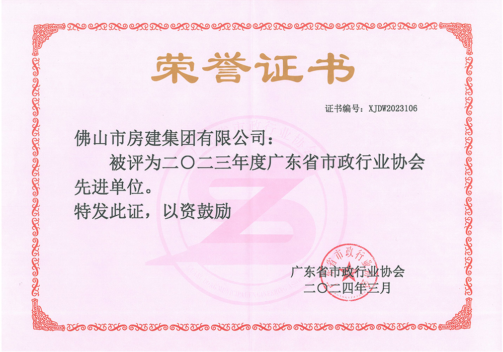 2023年度廣東省市政行業(yè)協(xié)會(huì)先進(jìn)單位