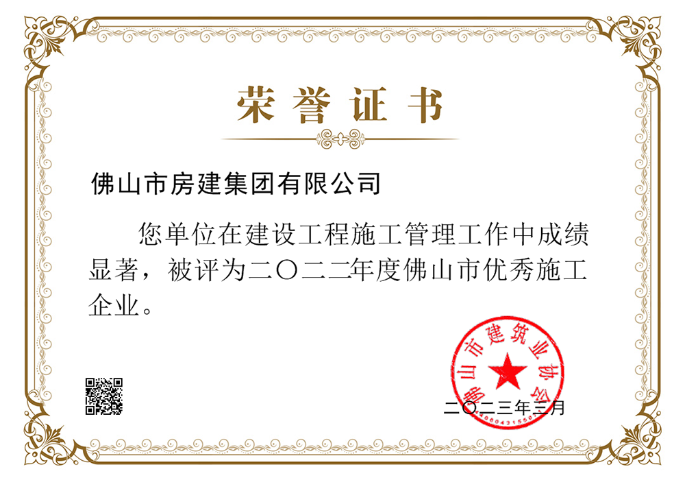2022年度佛山市優(yōu)秀施工企業(yè)