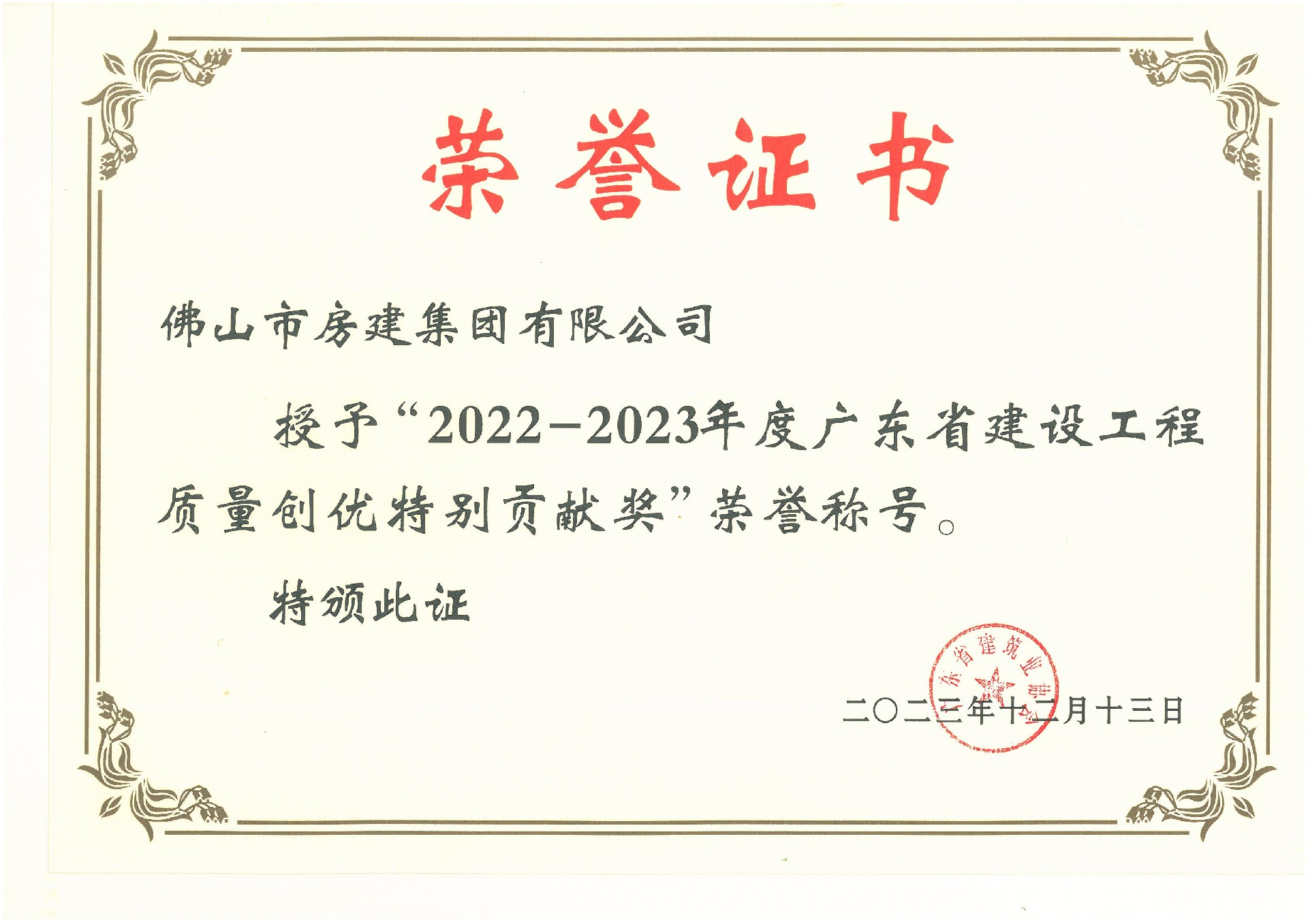 2023年度佛山市優(yōu)質(zhì)建筑業(yè)企業(yè)